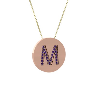 Ametist 14 ayar rose altın kolye (40 cm altın rolo zincir)