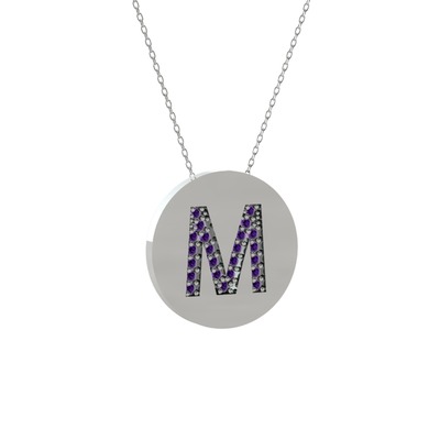 Ametist 8 ayar beyaz altın kolye (40 cm beyaz altın rolo zincir)