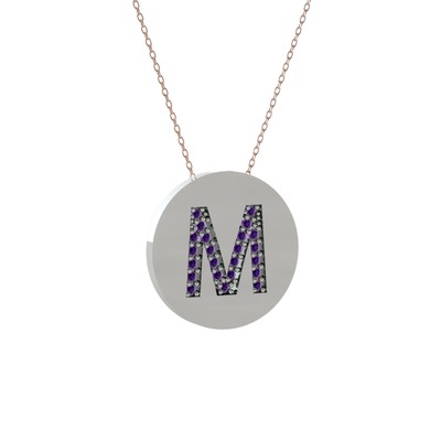 Ametist 925 ayar gümüş kolye (40 cm rose altın rolo zincir)