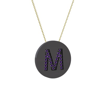 Ametist 925 ayar siyah rodyum kaplama gümüş kolye (40 cm altın rolo zincir)
