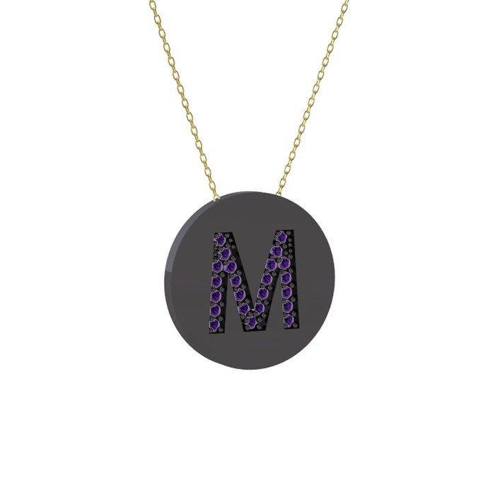 Ametist 925 ayar siyah rodyum kaplama gümüş kolye (40 cm gümüş rolo zincir)