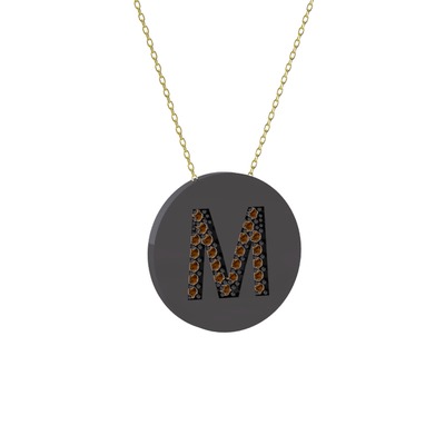 Dumanlı kuvars 925 ayar siyah rodyum kaplama gümüş kolye (40 cm altın rolo zincir)
