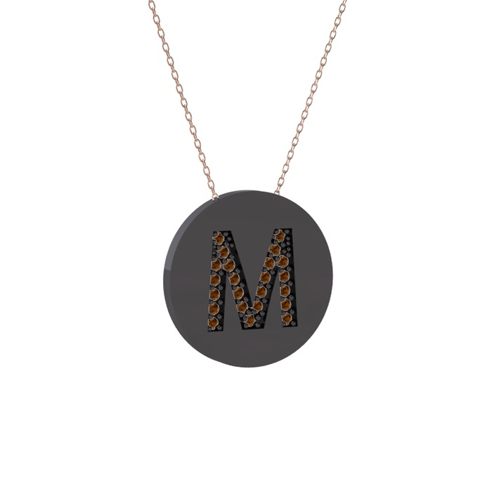 Dumanlı kuvars 925 ayar siyah rodyum kaplama gümüş kolye (40 cm rose altın rolo zincir)