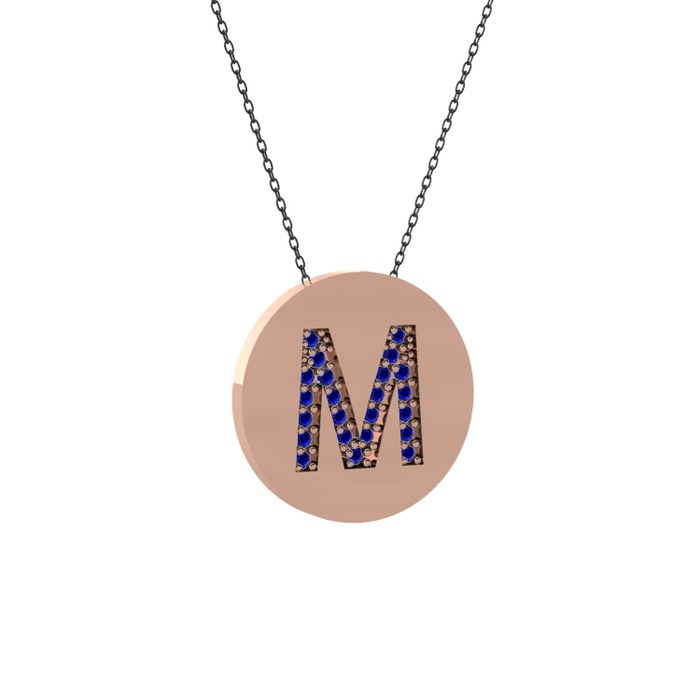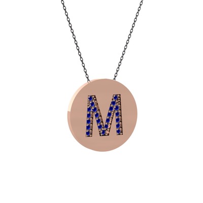 Lab safir 14 ayar rose altın kolye (40 cm gümüş rolo zincir)