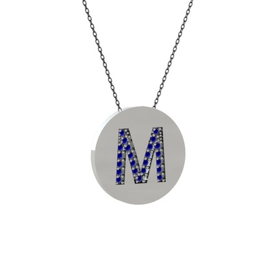 Lab safir 18 ayar beyaz altın kolye (40 cm gümüş rolo zincir)