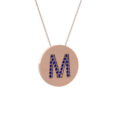 Lab safir 18 ayar rose altın kolye (40 cm rose altın rolo zincir)