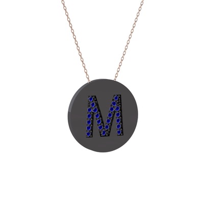 Lab safir 925 ayar siyah rodyum kaplama gümüş kolye (40 cm rose altın rolo zincir)