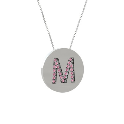 Pembe kuvars 18 ayar beyaz altın kolye (40 cm beyaz altın rolo zincir)