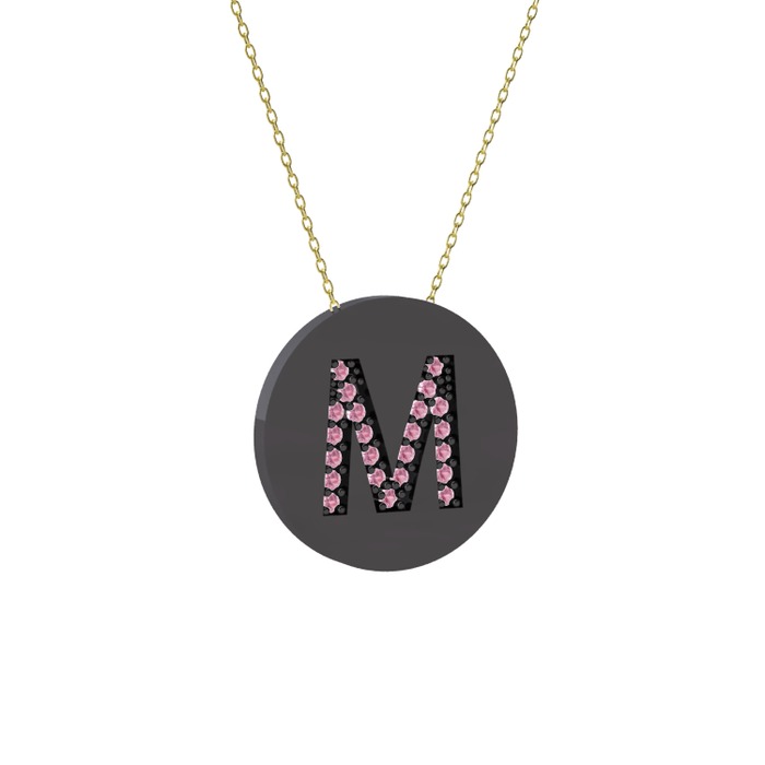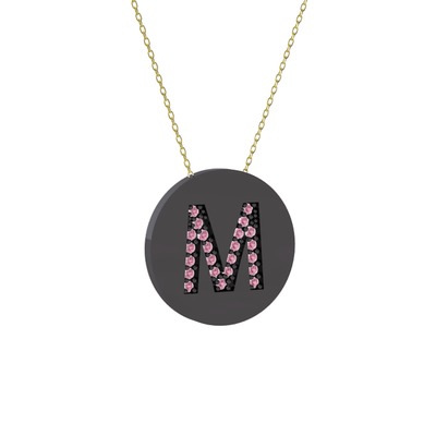 Pembe kuvars 925 ayar siyah rodyum kaplama gümüş kolye (40 cm altın rolo zincir)