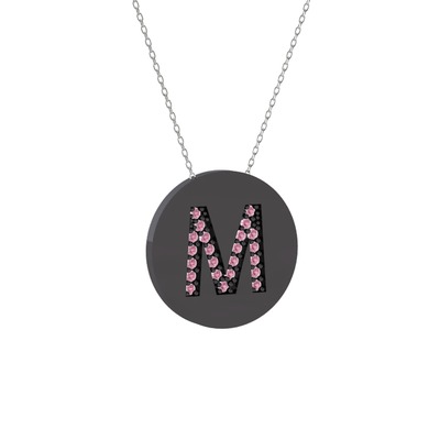 Pembe kuvars 925 ayar siyah rodyum kaplama gümüş kolye (40 cm beyaz altın rolo zincir)