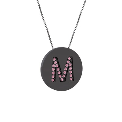 Pembe kuvars 925 ayar siyah rodyum kaplama gümüş kolye (40 cm gümüş rolo zincir)