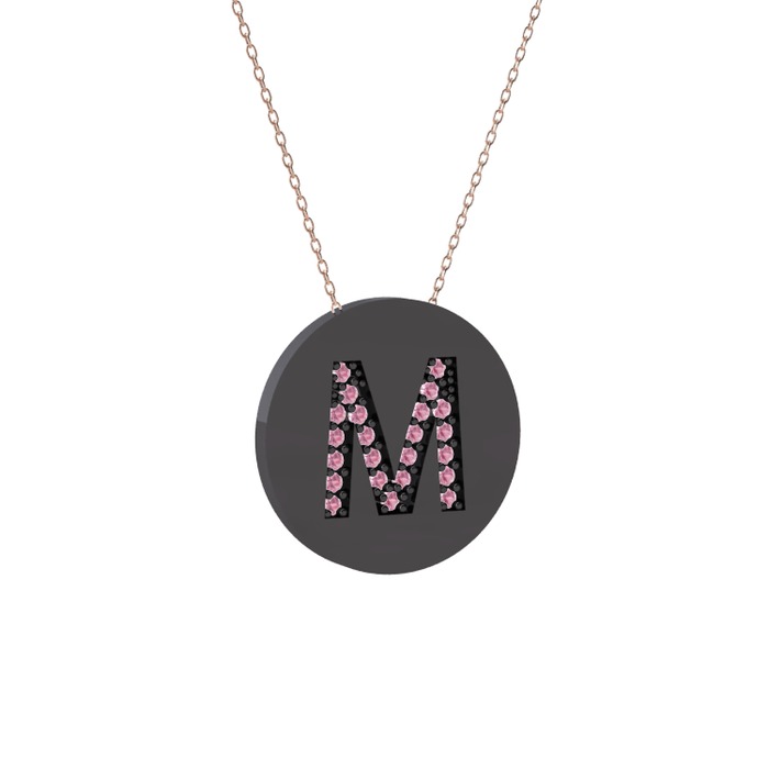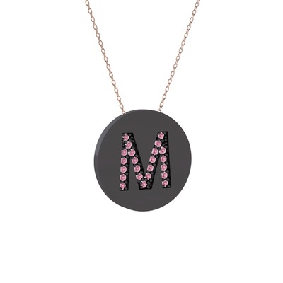 Pembe kuvars 925 ayar siyah rodyum kaplama gümüş kolye (40 cm gümüş rolo zincir)