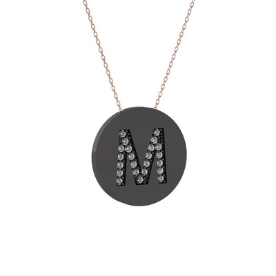 Pırlanta 925 ayar siyah rodyum kaplama gümüş kolye (0.1232 karat, 40 cm rose altın rolo zincir)