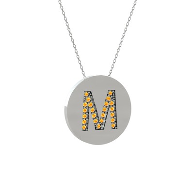 Sitrin 18 ayar beyaz altın kolye (40 cm gümüş rolo zincir)