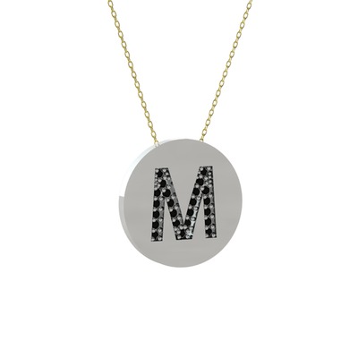 Siyah zirkon 14 ayar beyaz altın kolye (40 cm gümüş rolo zincir)