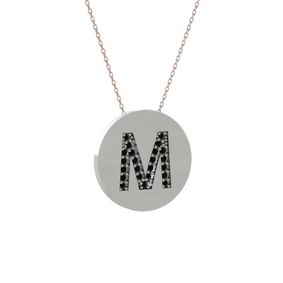 Siyah zirkon 18 ayar beyaz altın kolye (40 cm rose altın rolo zincir)