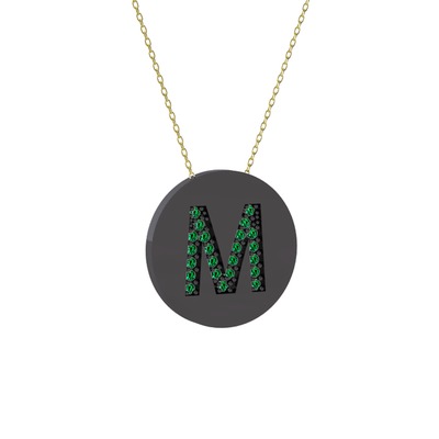 Yeşil kuvars 925 ayar siyah rodyum kaplama gümüş kolye (40 cm altın rolo zincir)