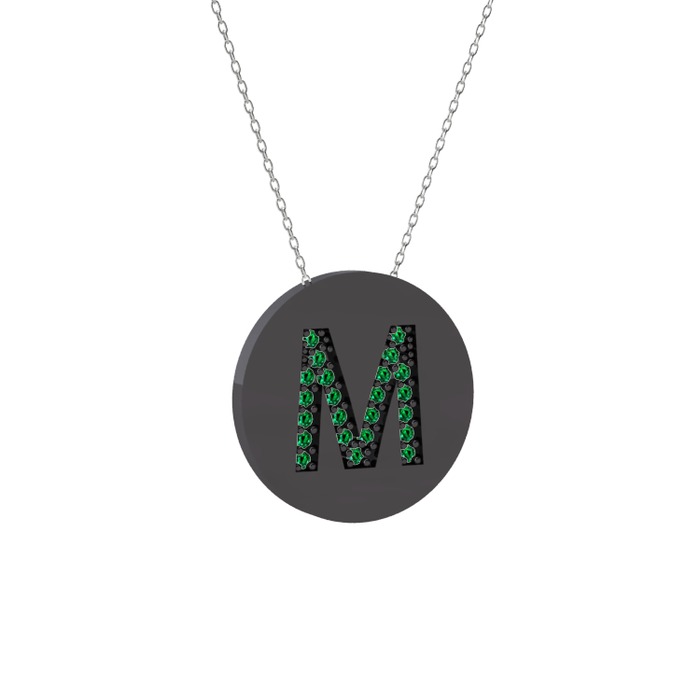 Yeşil kuvars 925 ayar siyah rodyum kaplama gümüş kolye (40 cm gümüş rolo zincir)