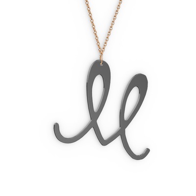 925 ayar siyah rodyum kaplama gümüş kolye (40 cm rose altın rolo zincir)