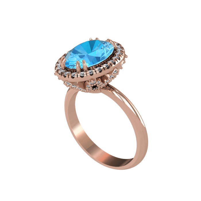 Akuamarin ve pırlanta 8 ayar rose altın yüzük (0.8448 karat)