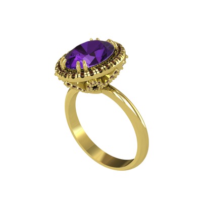 Ametist ve dumanlı kuvars 8 ayar altın yüzük