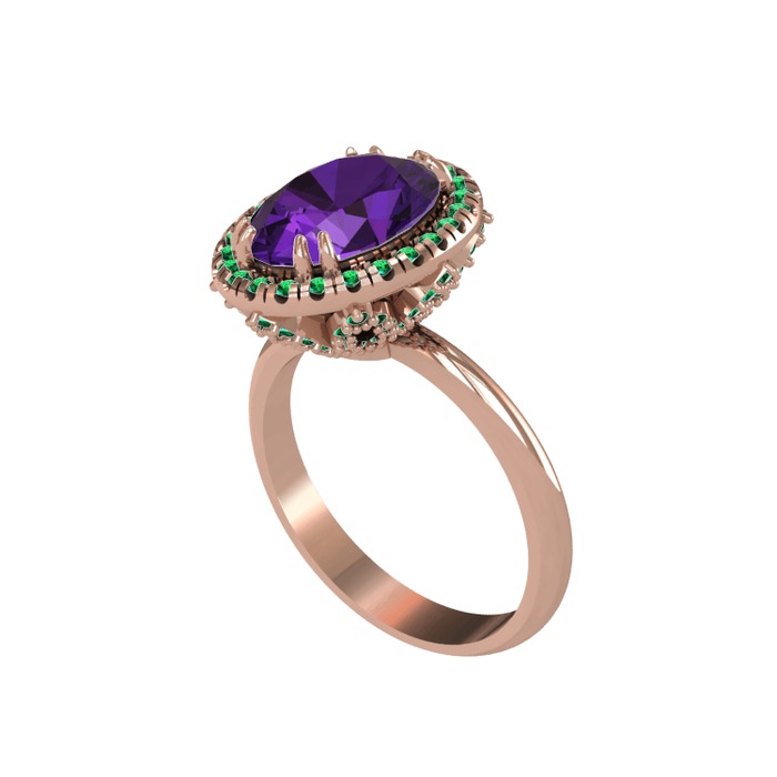 Ametist ve yeşil kuvars 925 ayar rose altın kaplama gümüş yüzük