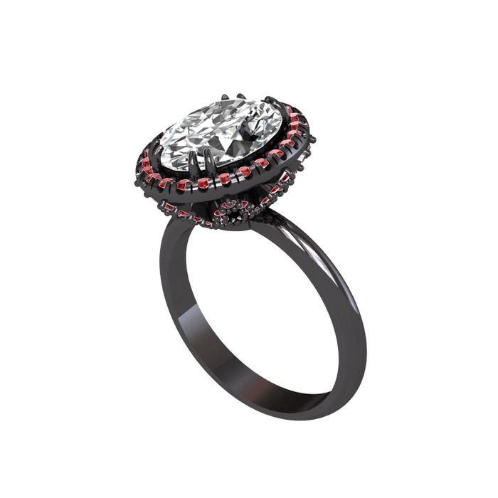 Beyaz zirkon ve garnet 925 ayar siyah rodyum kaplama gümüş yüzük