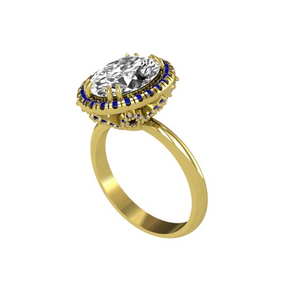 Beyaz zirkon ve lab safir 8 ayar altın yüzük