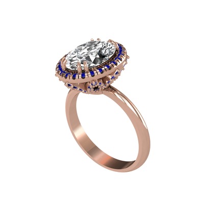 Beyaz zirkon ve lab safir 925 ayar rose altın kaplama gümüş yüzük