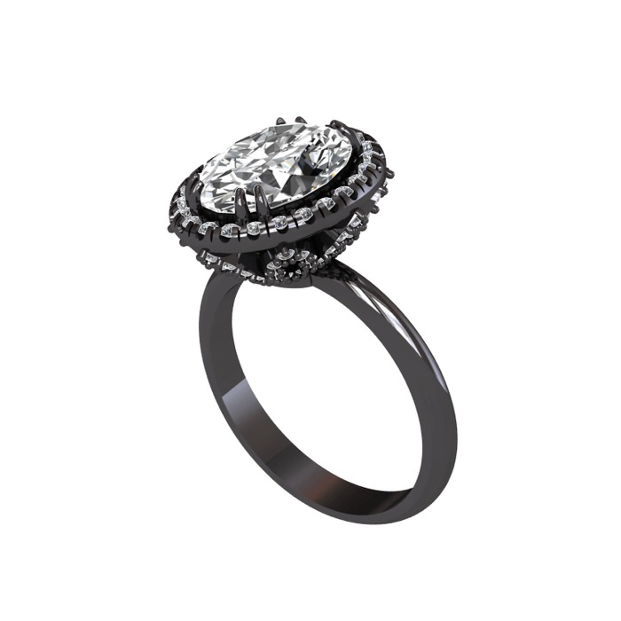 Beyaz zirkon ve pırlanta 925 ayar siyah rodyum kaplama gümüş yüzük (0.8448 karat)
