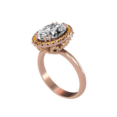 Beyaz zirkon ve sitrin 8 ayar rose altın yüzük