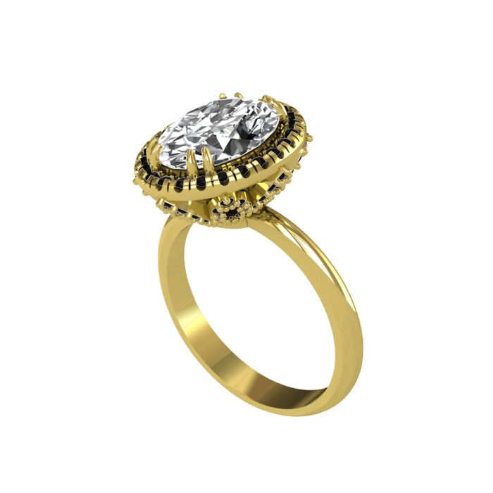 Beyaz zirkon ve siyah zirkon 14 ayar altın yüzük