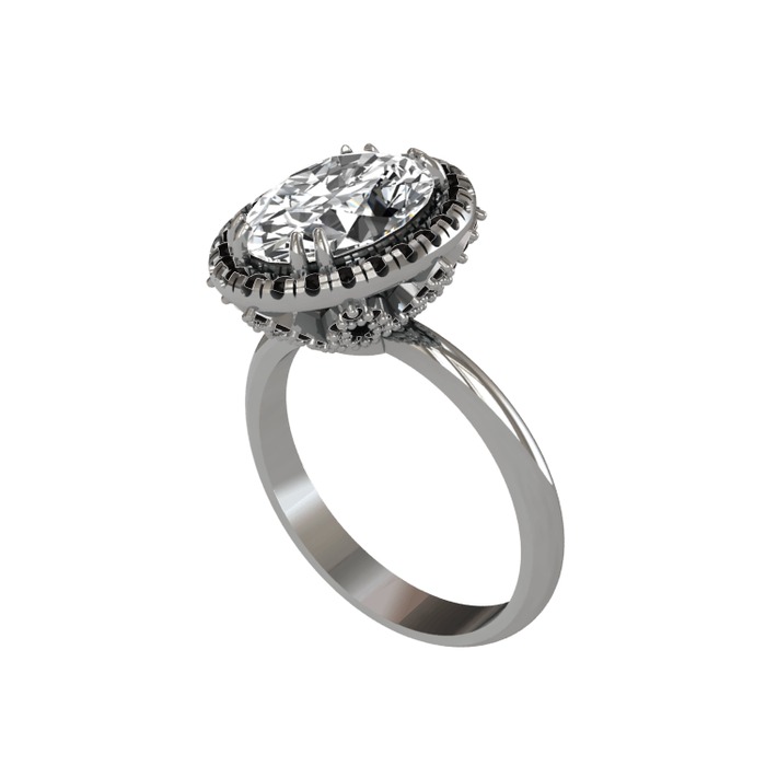 Beyaz zirkon ve siyah zirkon 18 ayar beyaz altın yüzük