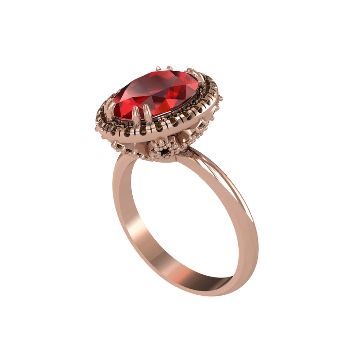 Garnet ve dumanlı kuvars 8 ayar rose altın yüzük