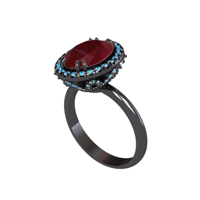 Kök yakut ve akuamarin 925 ayar siyah rodyum kaplama gümüş yüzük