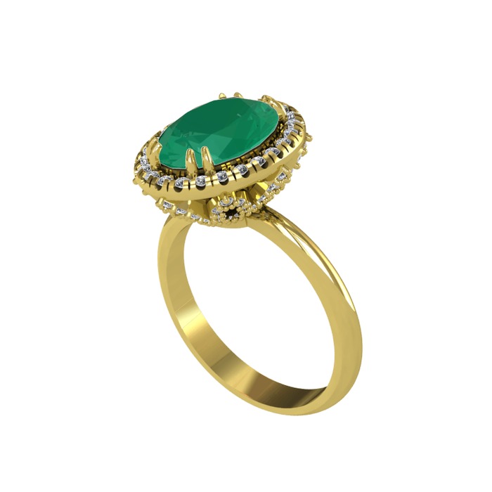 Kök zümrüt ve pırlanta 8 ayar altın yüzük (0.8448 karat)