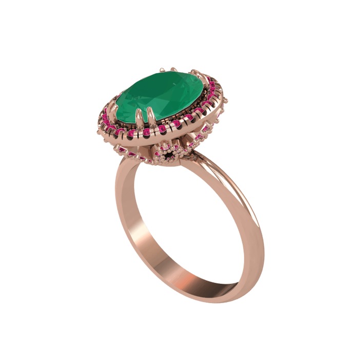 Kök zümrüt ve rodolit garnet 14 ayar rose altın yüzük