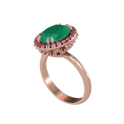 Kök zümrüt ve rodolit garnet 925 ayar rose altın kaplama gümüş yüzük