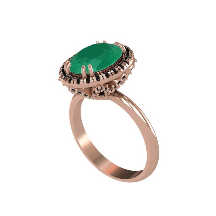 Kök zümrüt ve siyah zirkon 14 ayar rose altın yüzük
