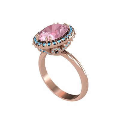 Pembe kuvars ve akuamarin 8 ayar rose altın yüzük