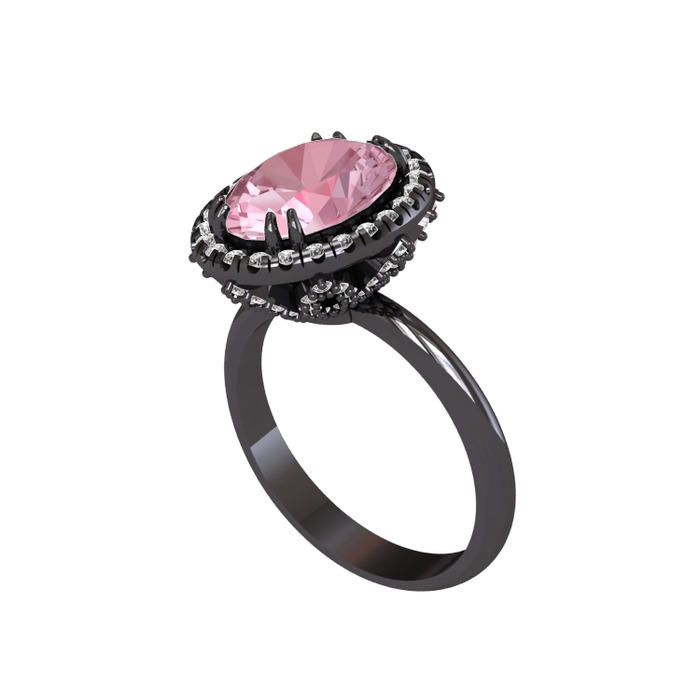 Pembe kuvars ve beyaz zirkon 925 ayar siyah rodyum kaplama gümüş yüzük