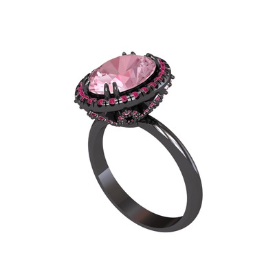 Pembe kuvars ve rodolit garnet 925 ayar siyah rodyum kaplama gümüş yüzük