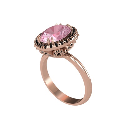 Pembe kuvars ve siyah zirkon 925 ayar rose altın kaplama gümüş yüzük
