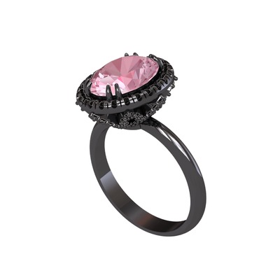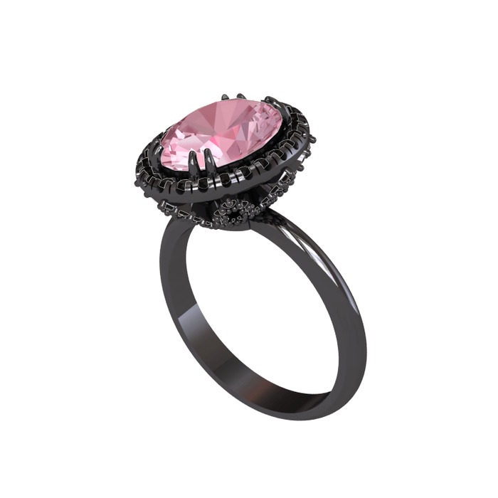 Pembe kuvars ve siyah zirkon 925 ayar siyah rodyum kaplama gümüş yüzük