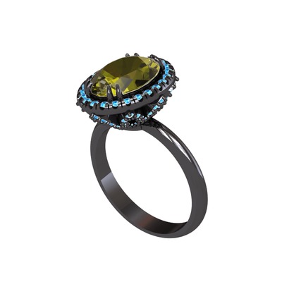 Peridot ve akuamarin 925 ayar siyah rodyum kaplama gümüş yüzük