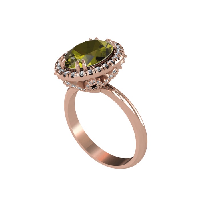 Peridot ve pırlanta 925 ayar rose altın kaplama gümüş yüzük (0.8448 karat)