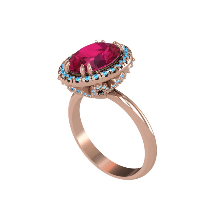 Rodolit garnet ve akuamarin 8 ayar rose altın yüzük