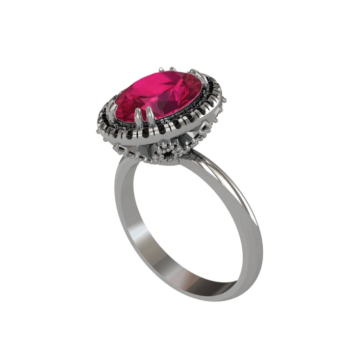 Rodolit garnet ve siyah zirkon 8 ayar beyaz altın yüzük