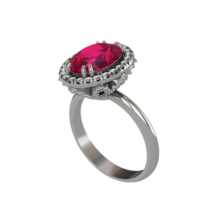 Rodolit garnet ve swarovski 8 ayar beyaz altın yüzük