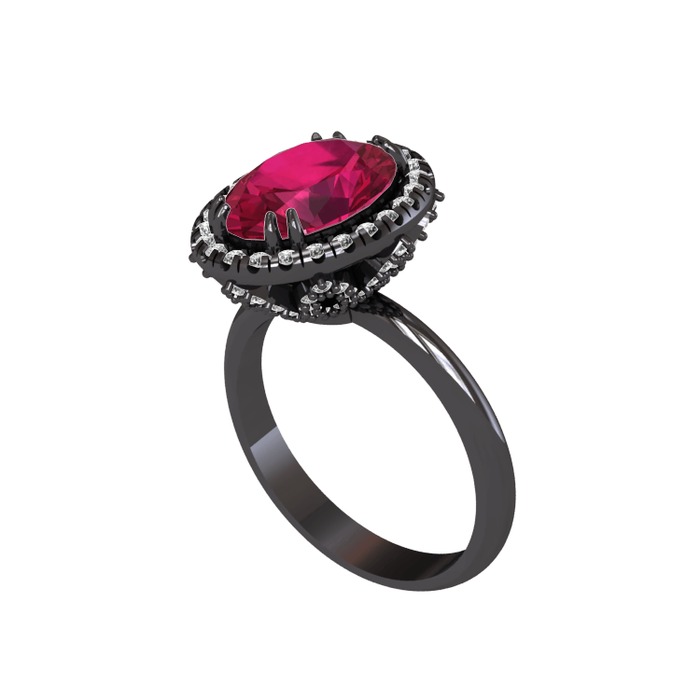 Rodolit garnet ve swarovski 925 ayar siyah rodyum kaplama gümüş yüzük